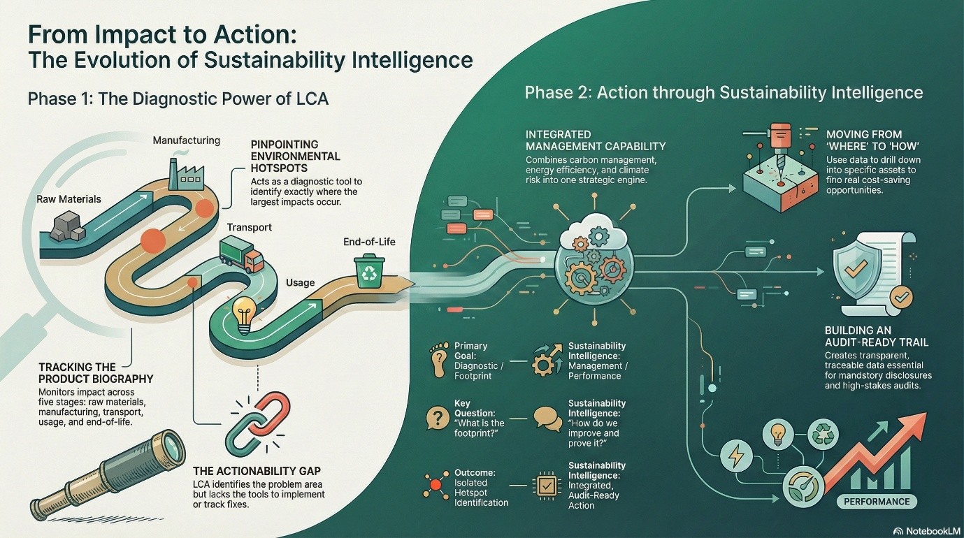 Live dashboards tracking emissions, resource consumption, and environmental performance